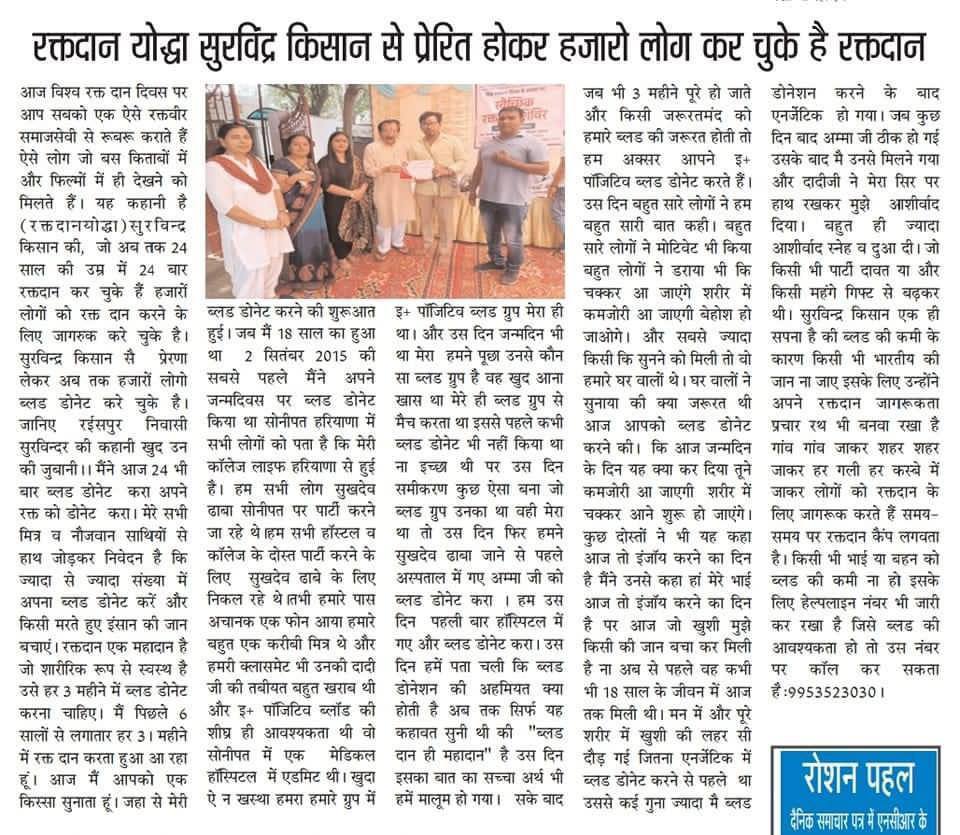 рдЧрд╝рд╛рдЬрд╝рд┐рдпрд╛рдмрд╛рдж рдХреЗ рд╕реБрд░рд╡рд┐рдВрджрд░ рдХрд┐рд╕рд╛рди Love To Help Foundation рд╕рдВрд╕реНрдерд╛рди рдХреЗ рдмреИрдирд░ рддрд▓реЗрд░рдХреНрддрджрд╛рди рд╢рд┐рд╡рд┐рд░реЛрдВ рдХрд╛ рдЖрдпреЛрдЬрди